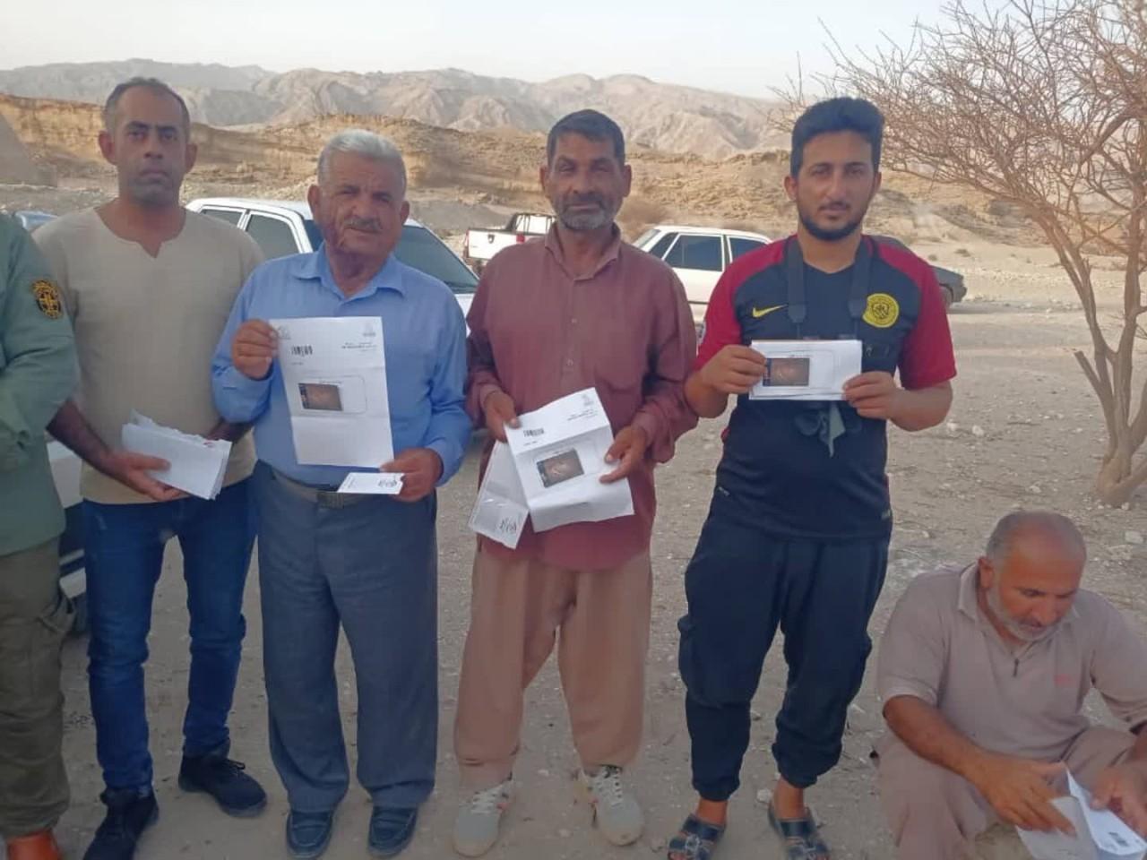با هماهنگی به عمل آمده با رییس اداره محیط زیست بندرلنگه تعداد ۱۲ کارت هدیه با مبالغ یک تا پنج میلیون مجموعا ۳۲ میلیون تومان به ۱۲ نفر از بومیان منطقه که در عملیات بهسازی گودال های طبیعی برای پیشگیری از سقوط و اتلاف حیات وحش شرکت کرده بودند طی مراسمی اهدا گردید.