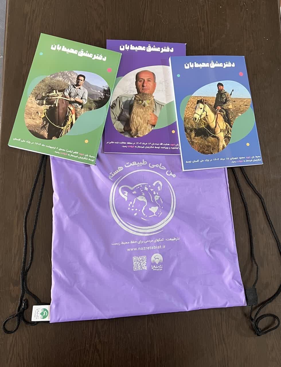 این ششمین سال است که بسته های نوشت افزار با چاپ تصاویر و پیامهای محیط زیستی چاپ و تولید میکنیم تا توسط محیط بانان برخی مناطق حفاظت شده به دست دانش آموزان ساکن روستاها برسانیم.