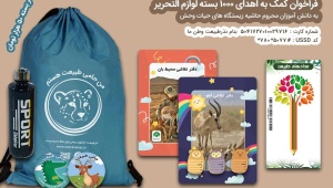 اقلام پک های نوشت افزار شامل : دفتر مشق و نقاشی ٬ قمقمه ٬ مدادرنگی بذردار ٫ کوله٫ پیکسل آماده شده و پس از بسته بندی به مناطق مدنظر ارسال خواهند شد تا توسط محیط بانان به داش آموزان اهدا شوند.