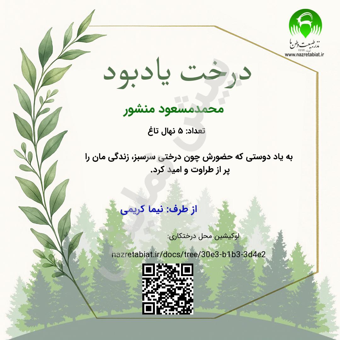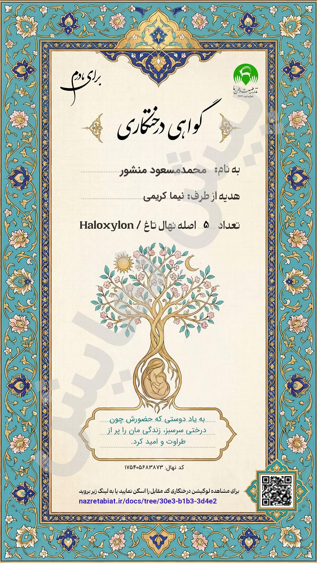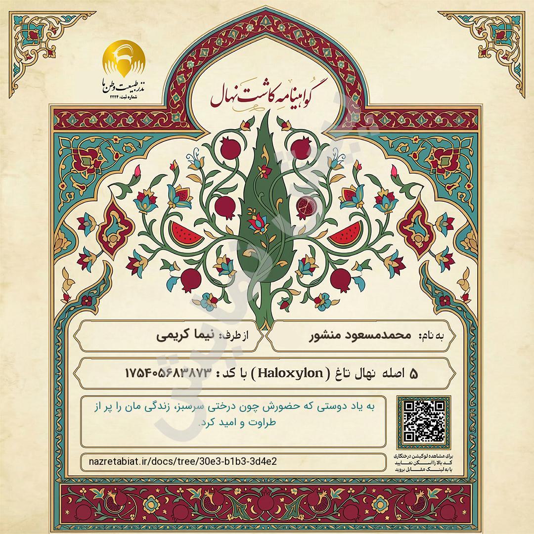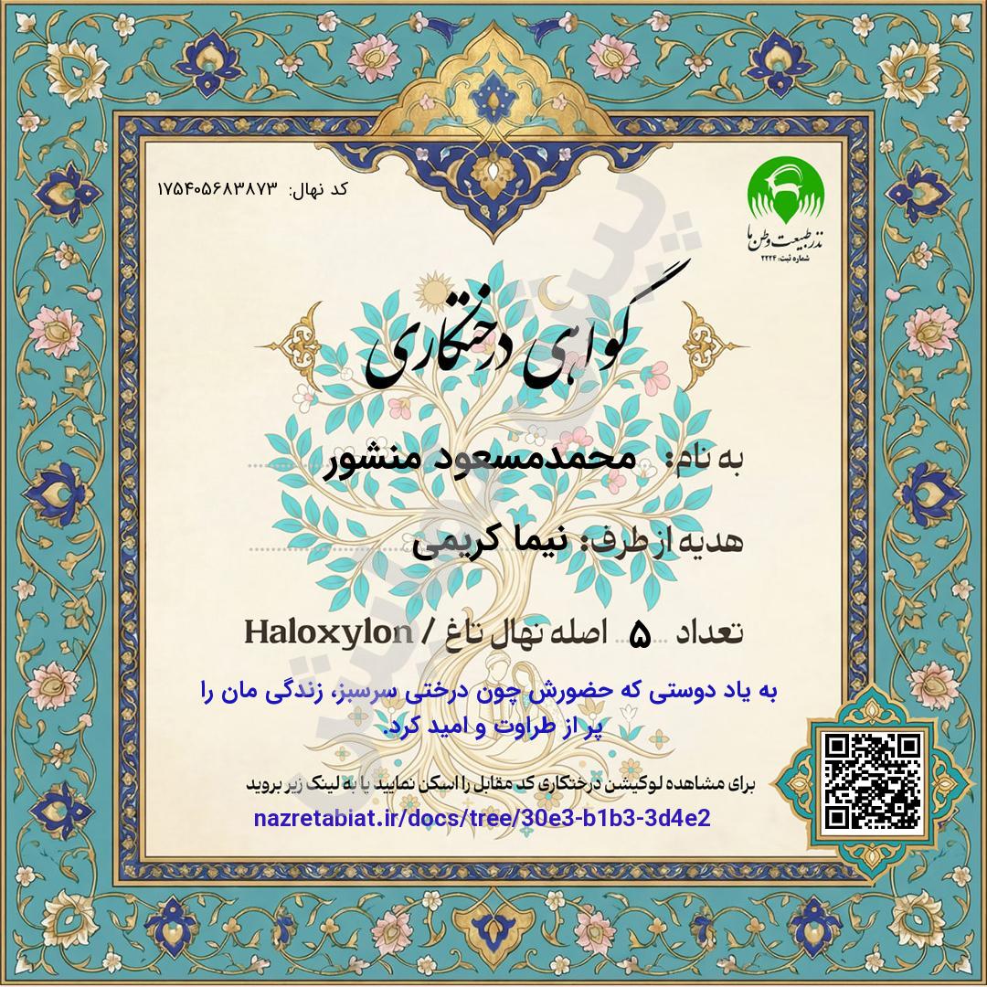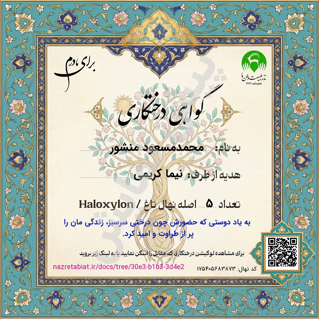 جهت دریافت سند درخت، نام اهداکننده و متن یادبود را تکمیل کنید. چنانچه مبلغ پرداختی شما حداقل به مقدار 1 نهال باشد امکان دریافت سند را پس از پرداخت خواهید داشت.